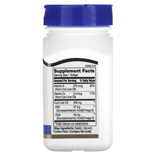 Описание товара 21st Century, Масло печени норвежской трески, 110 желатиновых капсул