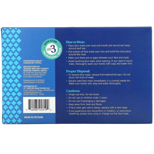 21st Century, Одноразовая защитная маска для лица ASTM F2100, 50 шт в упаковке, картонные коробки по 5-10 упаковок