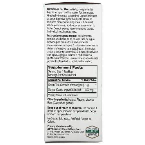 Описание товара 21st Century, Травяной чай для похудения, зеленый чай, 24 чайных пакетиков, 1,6 унции (45 г)