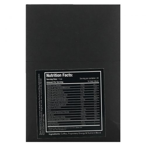 Кофе с огромной суточной дозой мультивитаминов для дополнительной силы, концентрации и энергии. Используя наш чистый, натуральный кофеин из зеленого чая.