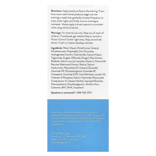 Описание товара ACNE FREE, Очищающая сыворотка от пятен с ретинолом, 30 мл (1 жидк. Унция)