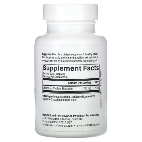 Advance Physician Formulas, Inc., Битартрат холина, 650 мг, 60 капсул
