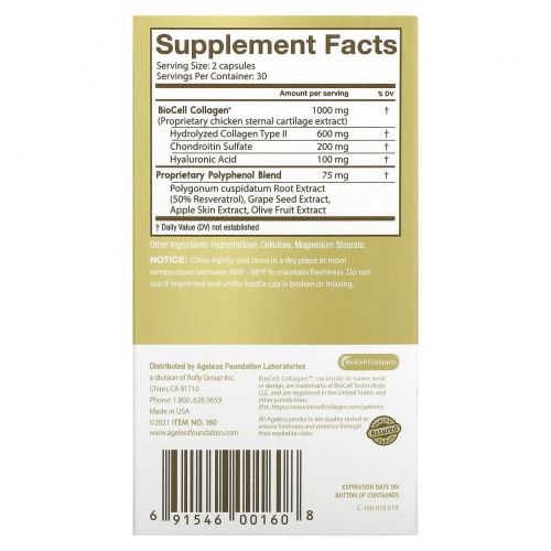 Описание товара Ageless Foundation Laboratories, УльтраДерм Голд, коллаген стимулятор, 60 капсул