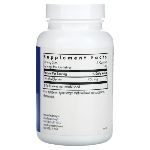 Описание товара Allergy Research Group, Триметилглицин ТМГ, 100 растительных капсул