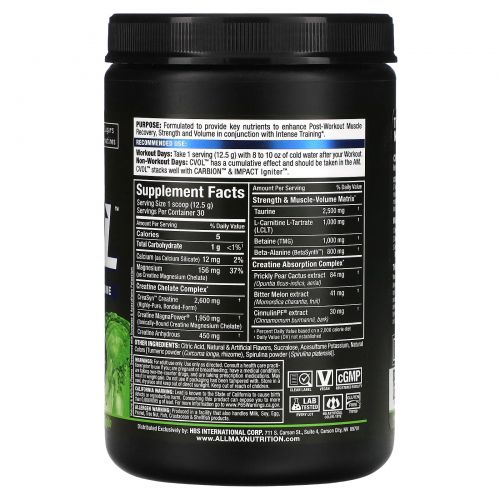 Описание товара ALLMAX Nutrition, C:VOL, Professional-Grade Creatine + Taurine + L-Carnitine Complex, Coconut Lime Mojito, 13.2 oz (375 g)