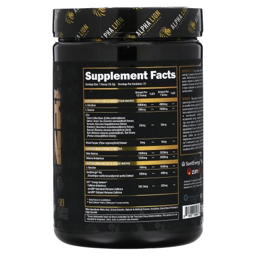 Описание товара ALPHA LION, SuperHuman Pre, Miami Vice, пина-колада и клубничный дайкири, 342,3 г (12,07 унции)