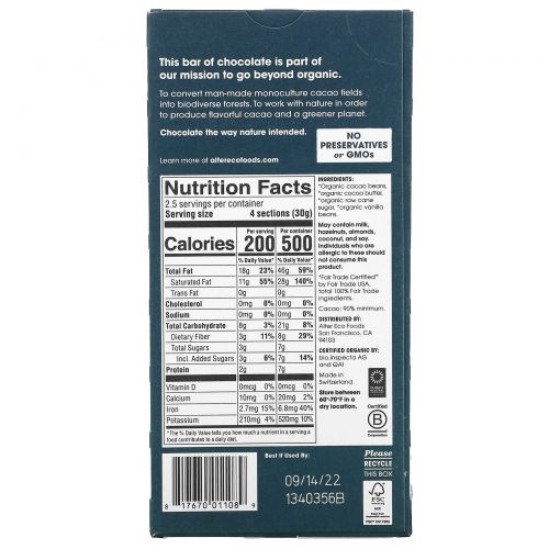 Описание товара Alter Eco, Органический шоколад, темное суперзатмение, 2,65 унций (75 г)