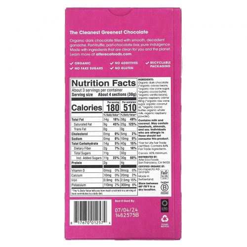 Описание товара Alter Eco, Trumble Thins, органический темный шоколад, малиновый крем, 84 г (2,96 унции)