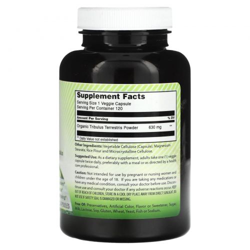 | Органический порошок якорцев стелющихся (Tribulus terrestris) | 630 мг | ** |