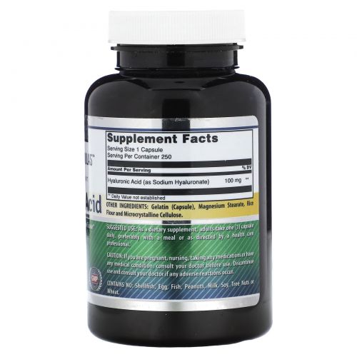 Amazing Nutrition, Гиалуроновая кислота, 100 мг, 250 капсул