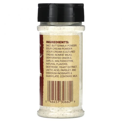 Соль, пахта в порошке, сметана в пудре (сметана, обезжиренное молоко)), обезвоженный лук и чеснок, мальтодекстрин, натуральные ароматизаторы, декстроза, экстракт дрожжей, молочная кислота, петрушка, и динатрий инозинат & amp; гуанилат.