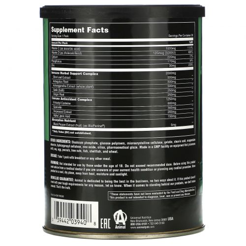 Описание товара Animal, Immune Pak, комплекс для укрепления иммунитета, наборы для тренировок, 30 пакетиков