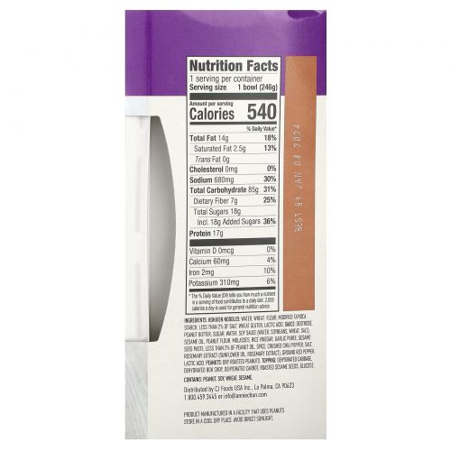 Описание товара Annie Chun's, Noodle Bowl, арахис и кунжут по-тайски, неострый, 246 г (8,7 унции)