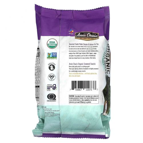 Описание товара Annie Chun's, Органические морские водоросли, морская соль, 10 г (0,35 унции)