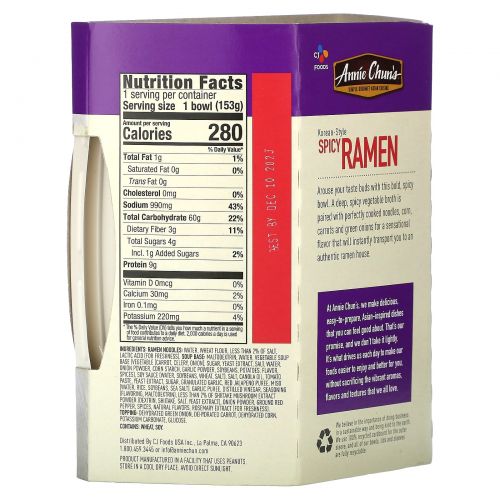 Описание товара Annie Chun's, Рамен, острый по-корейски, 153 г (5,4 унции)