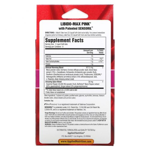 Описание товара appliednutrition, Libido-Max Pink, for Women, 16 Fast-Acting Liquid Soft-Gels