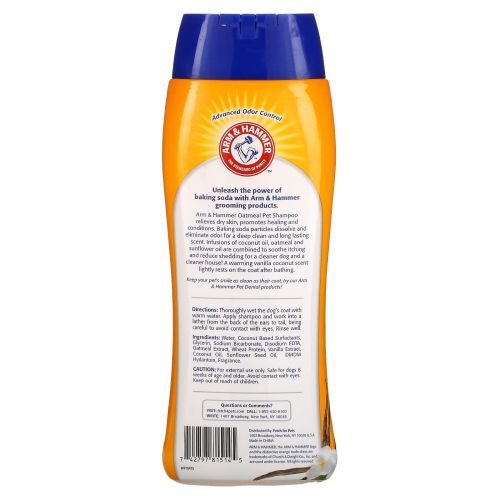 Описание товара Arm & Hammer, Soothing Oatmeal Shampoo for Pets, Vanilla Coconut, 20 fl oz (591 ml)