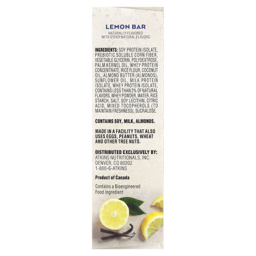 Описание товара Atkins, Лимонный батончик, 5 батончиков, 1,41 унц. (40 г) каждый