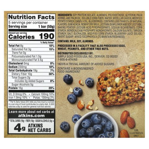 Описание товара Atkins, Запеченный энергетический батончик с голубикой, 5 батончиков, 50 г (1,76 унции)