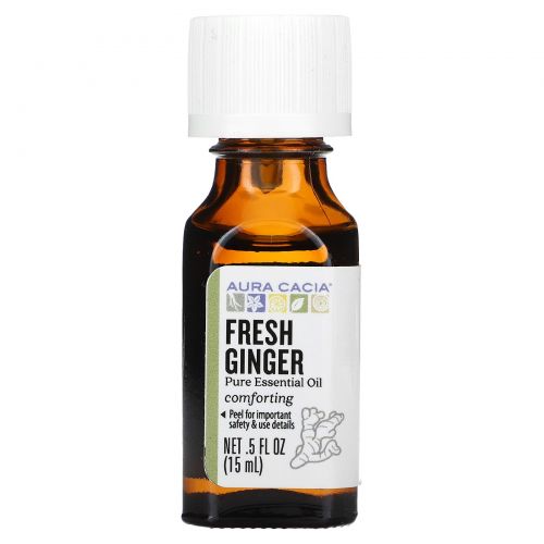 Aura Cacia, На 100% чистое эфирное масло, свежий имбирь, 0,5 жидк. унции (15 мл)