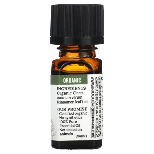 Описание товара Aura Cacia, Органическое масло из листьев корицы, 0,25 жидких унций (7,4 мл)