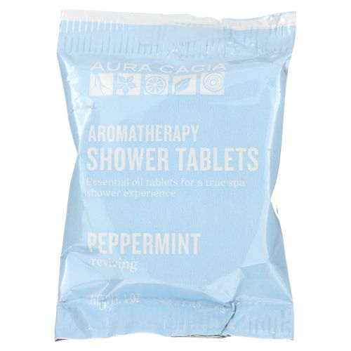 Aura Cacia, Таблетки для душа для ароматерапии, восстанавливающая перечная мята, 3 таблетки по 1 унции