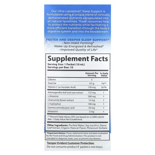 Описание товара Aurora Nutrascience, Ultra-Liposomal® Sleep Support, 10 пакетиков по 10 мл (0,34 жидк. Унции)
