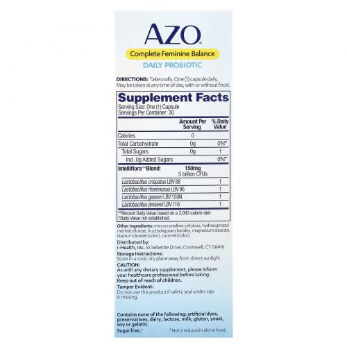 Описание товара Azo, Complete Feminine Balance, Daily Probiotic, 30 Once Daily Capsules