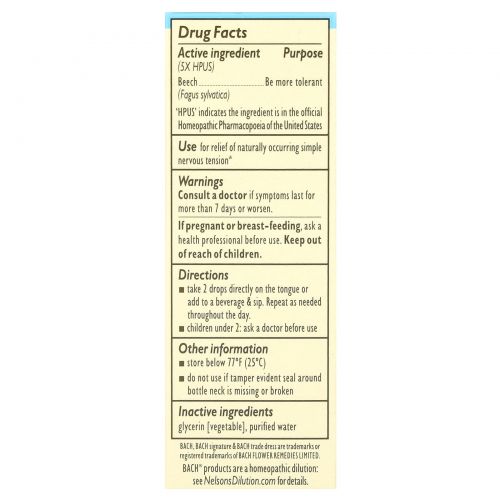 Описание товара Bach, Original Flower Remedies, бук, 10 мл (0,35 жидк. унции)