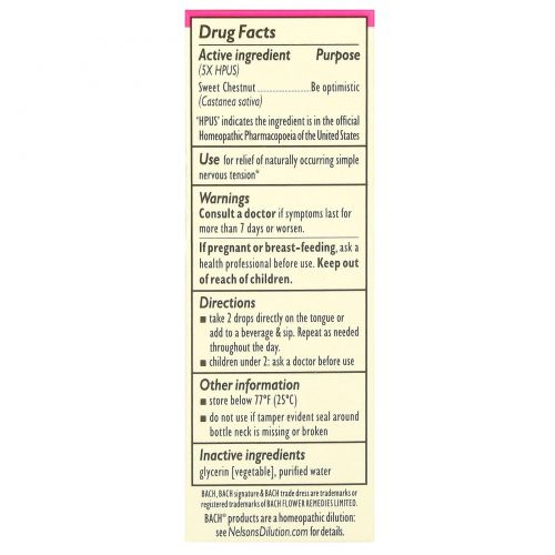 Описание товара Bach, Original Flower Remedies, сладкий каштан, 10 мл (0,35 жидк. унции)