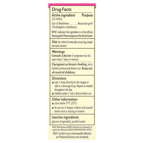 Описание товара Bach, Original Flower Remedies, Star of Bethlehem, 10 мл (0,35 жидк. унции)