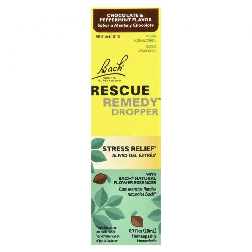 Описание товара Bach, RESCUE Remedy®, капельница, для снятия стресса, шоколад и перечная мята, 20 мл (0,7 жидк. Унции)