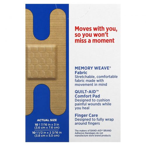 Описание товара Band Aid, лейкопластыри, гибкая ткань, 20 разных размеров