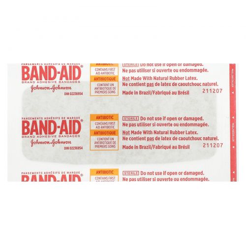 Описание товара Band Aid, лейкопластыри, защита от инфекций с Neosporin, очень большая, 8 повязок