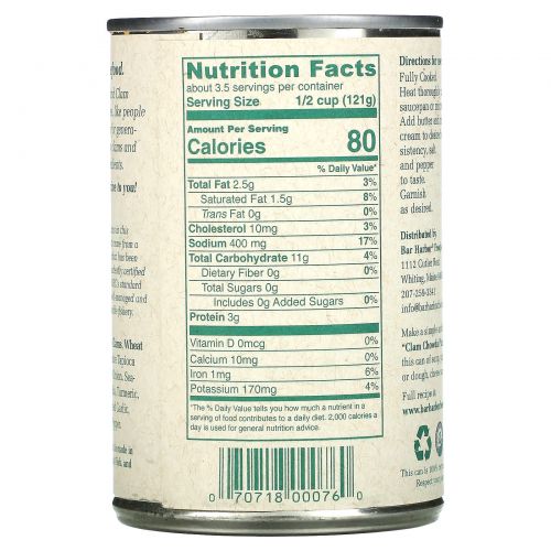 Описание товара Bar Harbor, New England Style Clam Chowder, Condensed, 15 oz (425 g)