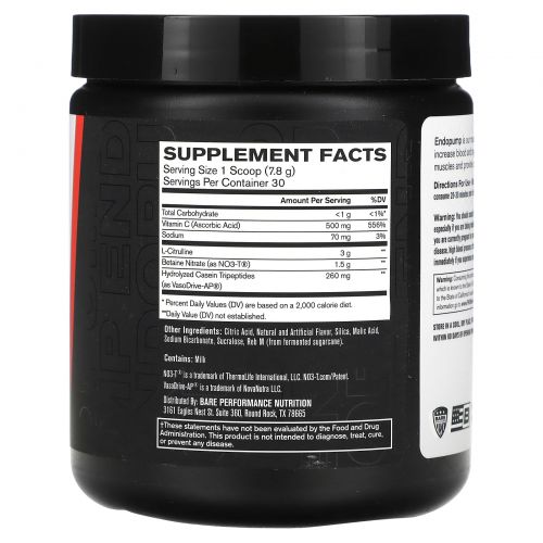 Описание товара Bare Performance Nutrition, Endo Pump, Muscle Pump Enhancer, голубая малина, 234 г (8,3 унции)