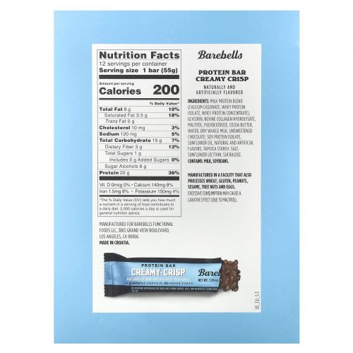 Описание товара Barebells, Протеиновый батончик, хрустящий крем, 12 батончиков, 55 г (1,94 унции)