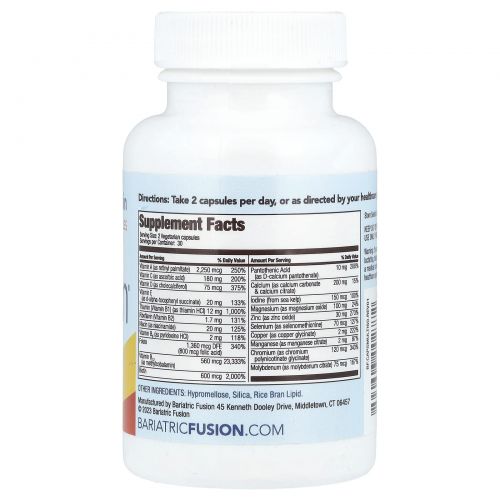 Бариатрические мультивитаминные капсулы - это бариатрические мультивитамины без железа, которые необходимо принимать дважды в день, чтобы удовлетворить ваши ежедневные потребности в питании после бариатрической операции.