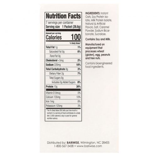 Описание товара BariWise, протеин, овсянка, кленовый сироп и коричневый сахар, 7 пакетиков по 26,6 г (0,94 унции)