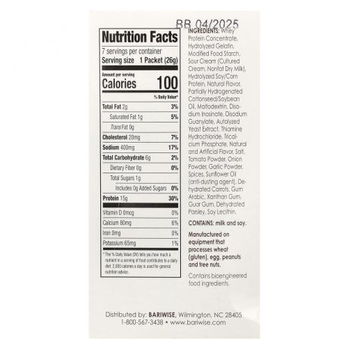 Описание товара BariWise, протеиновый суп, куриный крем, 7 пакетиков по 26 г (0,92 унции)