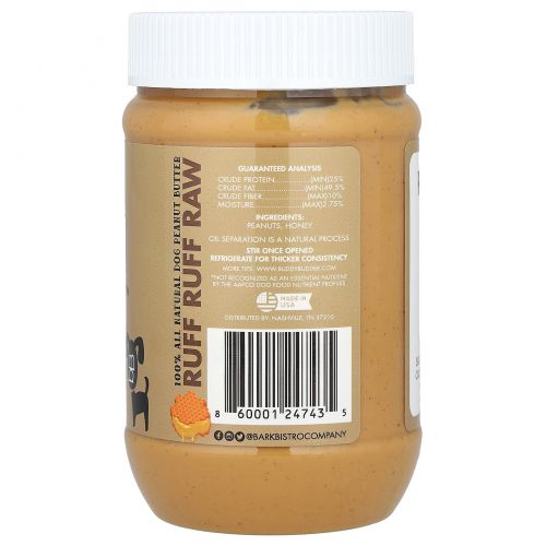 Описание товара Bark Bistro, Buddy Budder, арахисовая паста, для собак, без добавок, 480 г (17 унций)