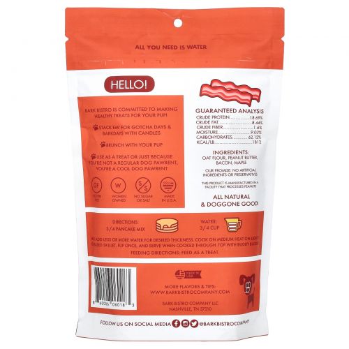 Описание товара Bark Bistro, World's First Pooch блины, со вкусом бекона, 396 г (14 унций)