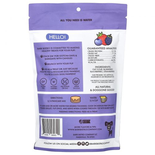Описание товара Bark Bistro, Worlds First Pooch блины, суперягодный вкус, 396 г (14 унций)