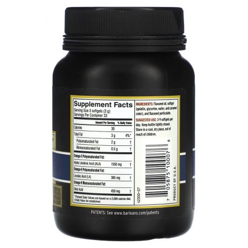 Описание товара Barlean's, Lignan Flax Oil, 100 Softgels