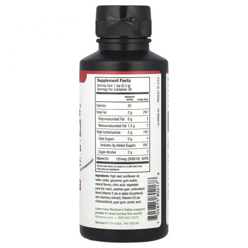 Описание товара Barlean's, Seriously Delicious, жидкий витамин D3, клубничный молочный коктейль, 125 мкг (5000 МЕ), 159 г (5,6 унции)