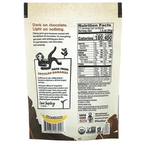 Описание товара Barnana, мягкие глазированные кусочки банана, темный шоколад, 100 г (3,5 унции)