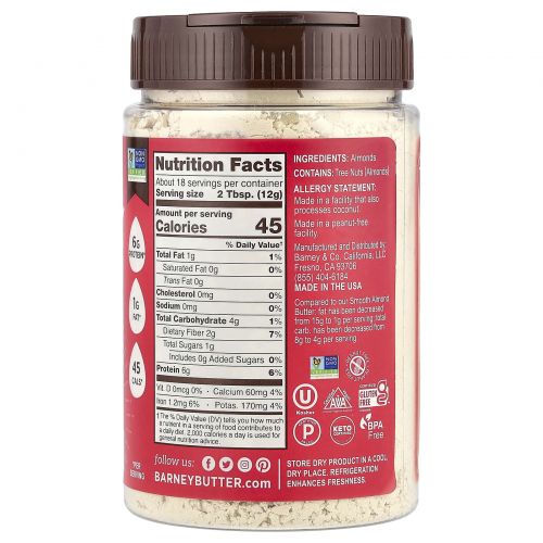 Описание товара Barney Butter, Powdered Almond Butter, Unsweetened, 8 oz (226g)