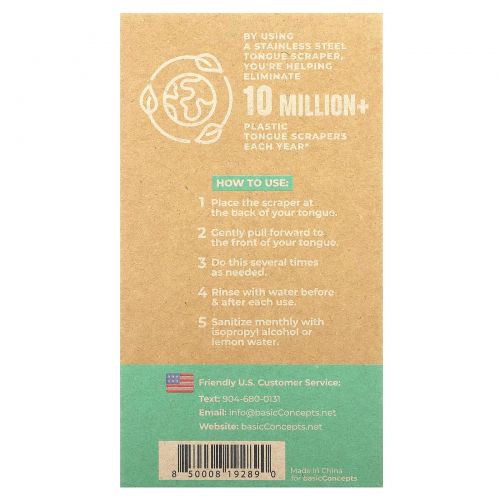 Используя скребок для языка из стали, вы помогаете избавиться от более 10 миллионов пластиковых скребков для языка каждый год