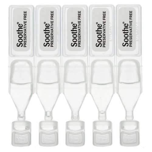 Описание товара Bausch + Lomb, Soothe, смазывающие глазные капли, без консервантов, 30 одноразовых флаконов, по 0,6 мл (0,02 жидк. Унции) каждый