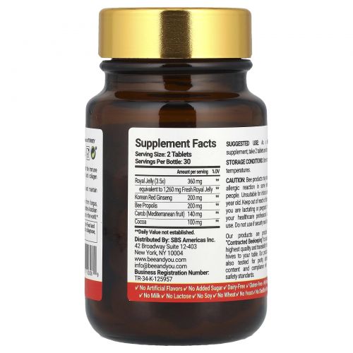 Описание товара Bee & You, Маточное молочко, женьшень, прополис, 60 таблеток
